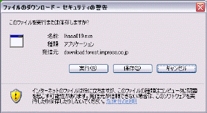 ファイルは実行ではなく、保存しましょう。保存先はデスクトップがいいでしょう。