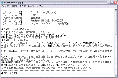 「Readme.txt」がメモ帳で開きます。 ソフトの説明が書かれているので目を通しましょう。 特にアンインストール(削除)方法については確認しておくといいでしょう。 閉じるボタン |