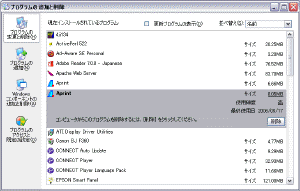 を開き、プログラムの追加と削除