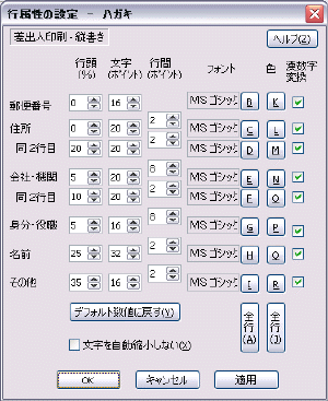 行属性は宛先モードと差出人モードごと、また、封筒サイズごとに設定する必要があります。