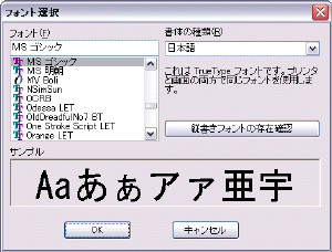 | 書体(フォント)はパソコンに入っている書体から選べます。 サンプルで確認できますね。 |