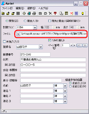 複数の宛名データを入力してある ファイル