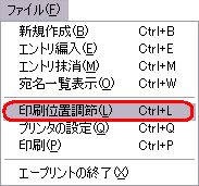 ファイル → 印刷位置調節、または、印刷位置調節ボタン